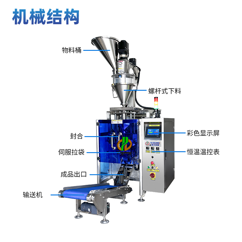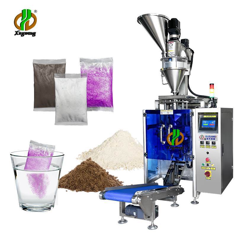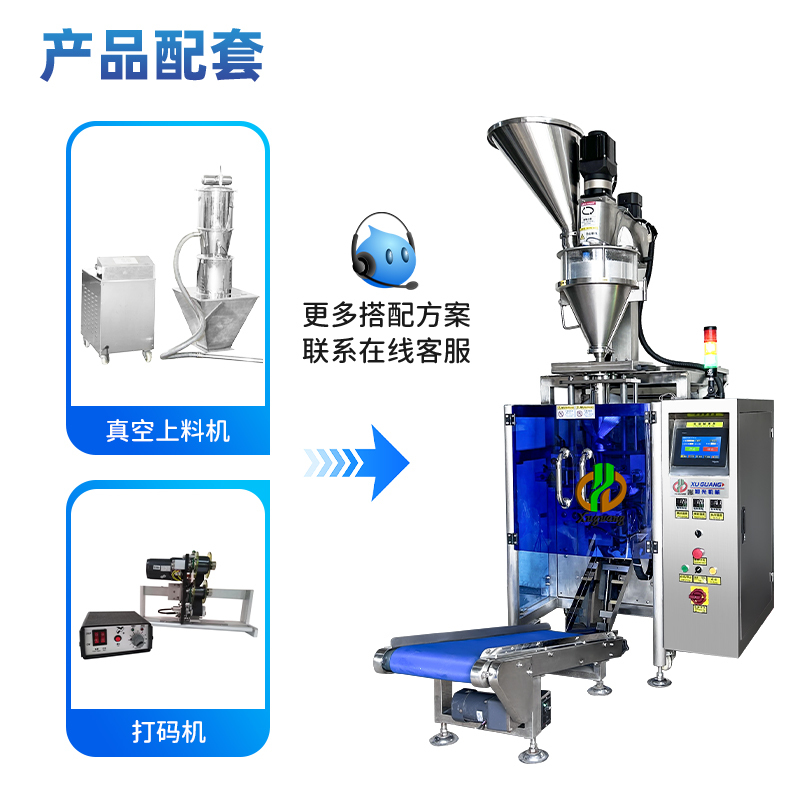 这个款机器同时可以包装饲料粉,清洁剂粉,动物药粉,也可以包装又轻又粘的闪粉。