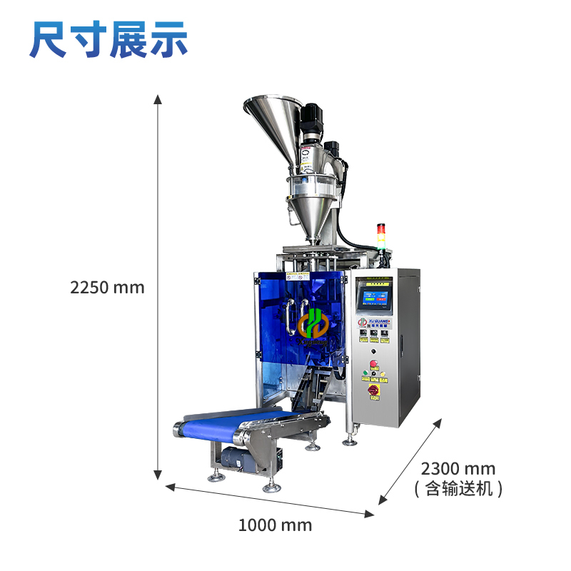 设备可连续自动完成计量、制袋、灌装、封合、打码,计数等一系列工作。显示屏采用7寸大屏,操作方便又简单,参数可一键设定,小白都可以轻松上手。整机采用不锈钢材质,符合食品级标准,防腐防锈。机身尺寸2.2米,可搭配上料机协助上料。本机可达膜宽420mm。如果您需更大膜宽,也有其他机型,范围大可达0.2克到5公斤,皆可满足不同需求。