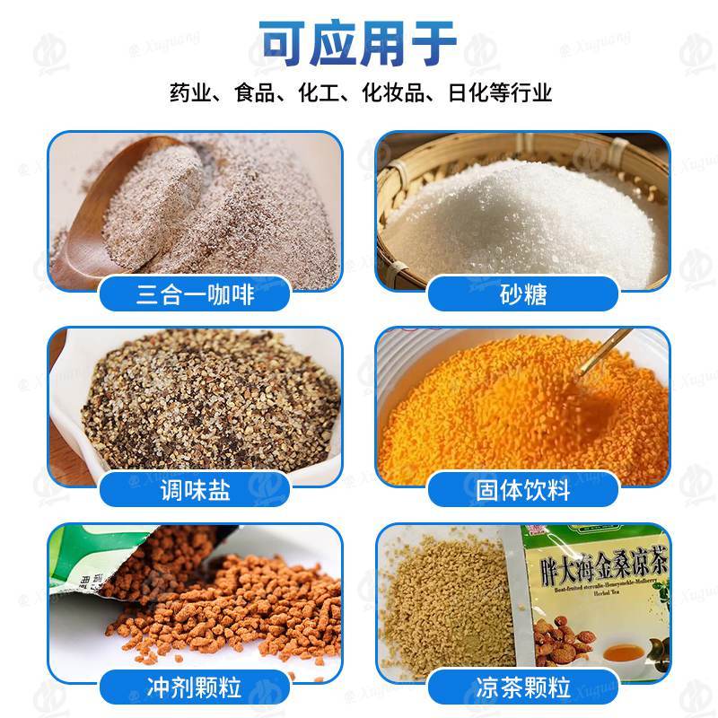 药冲剂颗粒(如板蓝根)这类物料是粉末和小颗粒结合的,摇摆下料可避免物料颗粒被磨碎,还能保证物料原始状态,对药效也不会影响。