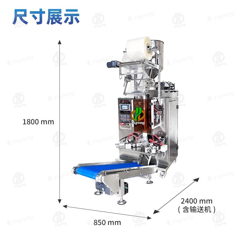 5.整体机身,采用了优质不锈钢材料,与产品直接接触的部分—-包括料仓、计量螺杆、下料斗、成型器等,我们采用食品级304不锈钢材质。设备自带报警系统,缺膜缺料自动报警。整机高1.8米,可配液体上料机,上料方便,生产稳定,不需要员工随时监控,设定好参数就可以了。