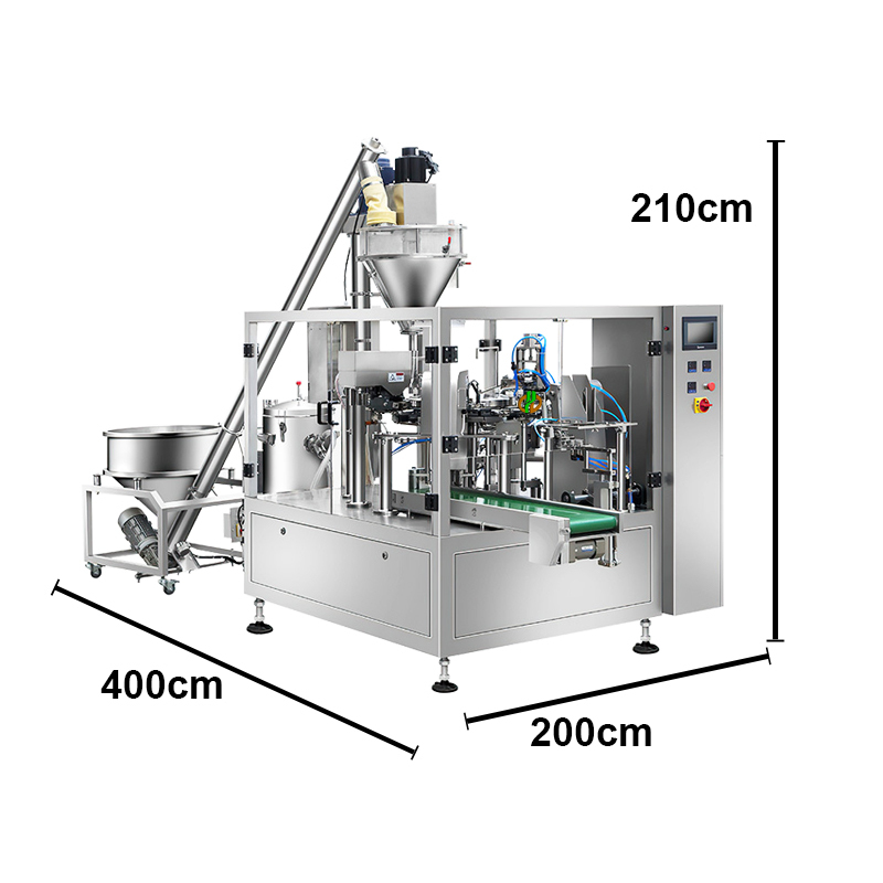 给袋式粉末包装机。与立式卷膜机不同之处在于它是先制作好的成品袋(即预制袋),机器工作流程:取袋 → 开袋 → 精准填充 → 封口。适用于食品、化工、医药、保健品等涉及粉末的行业。