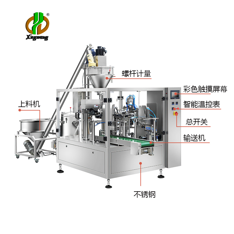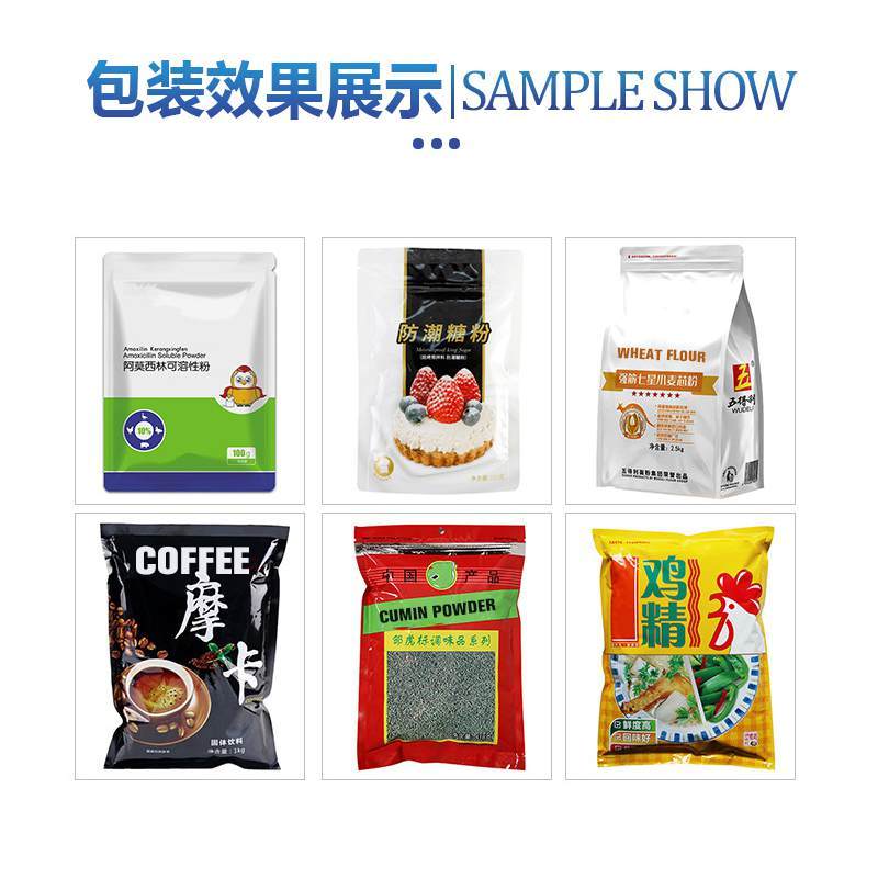 2.给袋粉末包装机高精度螺旋下料系统。传统机器可能用步进电机,或者普通电机,误差较大。给袋粉末包装机采用进口品牌的伺服电机和控制系统,精度可达±1g。包装至大范围可达2公斤。
