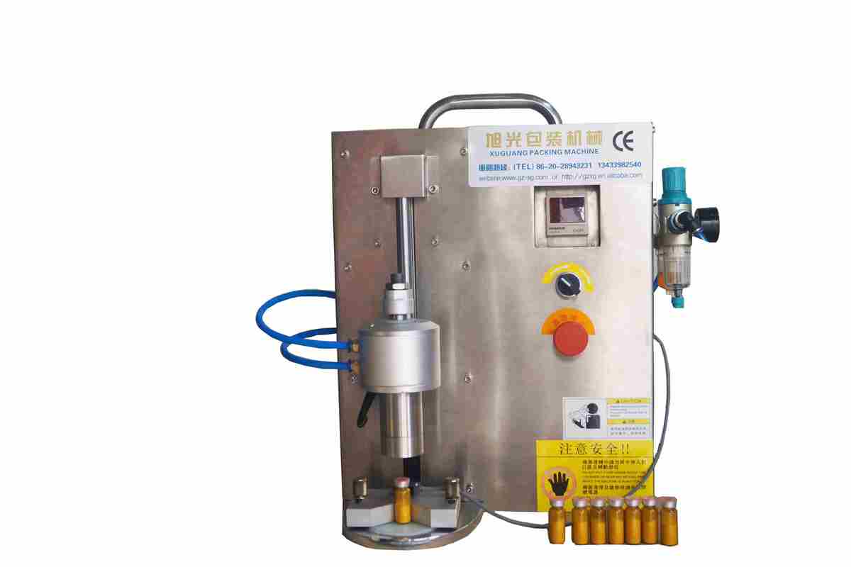 7.在生产中可搭配压盖机一起使用。操作员A负责在灌装机上放空瓶并启动灌装粉末,操作员B(或同一人)只需将灌装好的瓶子移至压盖工位并放置瓶盖,按下启动键,瞬间完成压盖。压盖机可适应不同材质、不同尺寸的瓶盖,机器每次都以相同力度工作,确保封口质量稳定可靠。