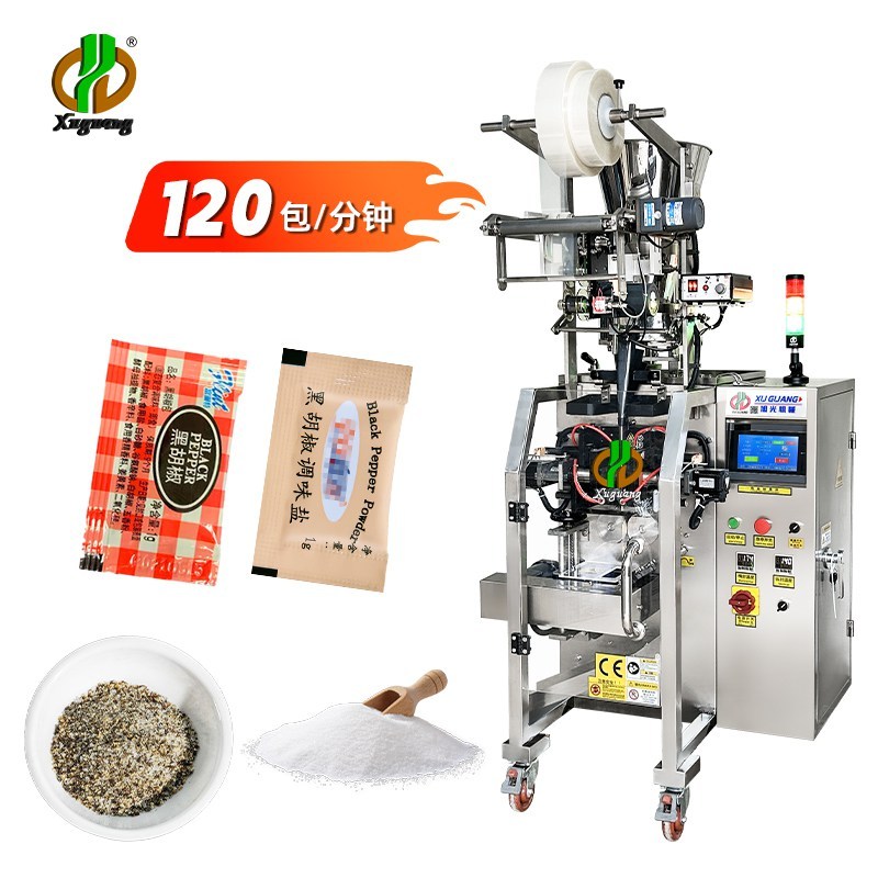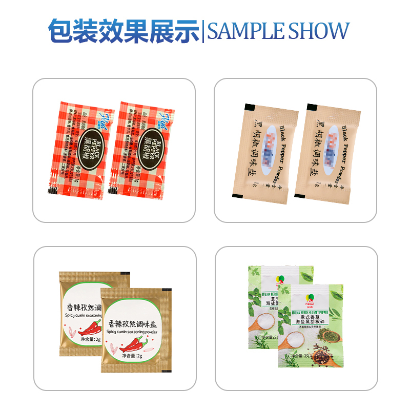 1.这台高速三边封颗粒包装机,完美适配包装调味盐、胡椒盐、味精、白糖、胡椒颗粒这类产品了。